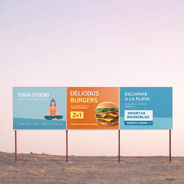 Valla impresa en papel blueblack 115 gr, es el más usado y económico para imprimir vallas publicitarias de gran formato. Este papel estucado blanco con trasera azul para encolar, consigue al colocarlo la opacidad necesaria de la valla que haya detrás. Este papel consigue una alta definición de las imágenes para que tu campaña se vea desde cualquier sitio, se utiliza para campañas de pequeña duración