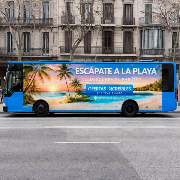 Vinilo adhesivo MICROPERFORADO. Es un vinilo con perforaciones que se instala sobre cristales facilitando la visión al exterior, y por lado de fuera se visualiza la impresión. Vinilo homologado que se usa habitualmente en ventanas traseras de automóviles, furgonetas, autobuses…Vinilo ideal para campañas de corta duración, mínimo residuo y fácil de instalar. … Ancho máximo imprimible 130 cm. Medidas superiores por medio de paneles superpuestos 1,5 cm en las uniones.